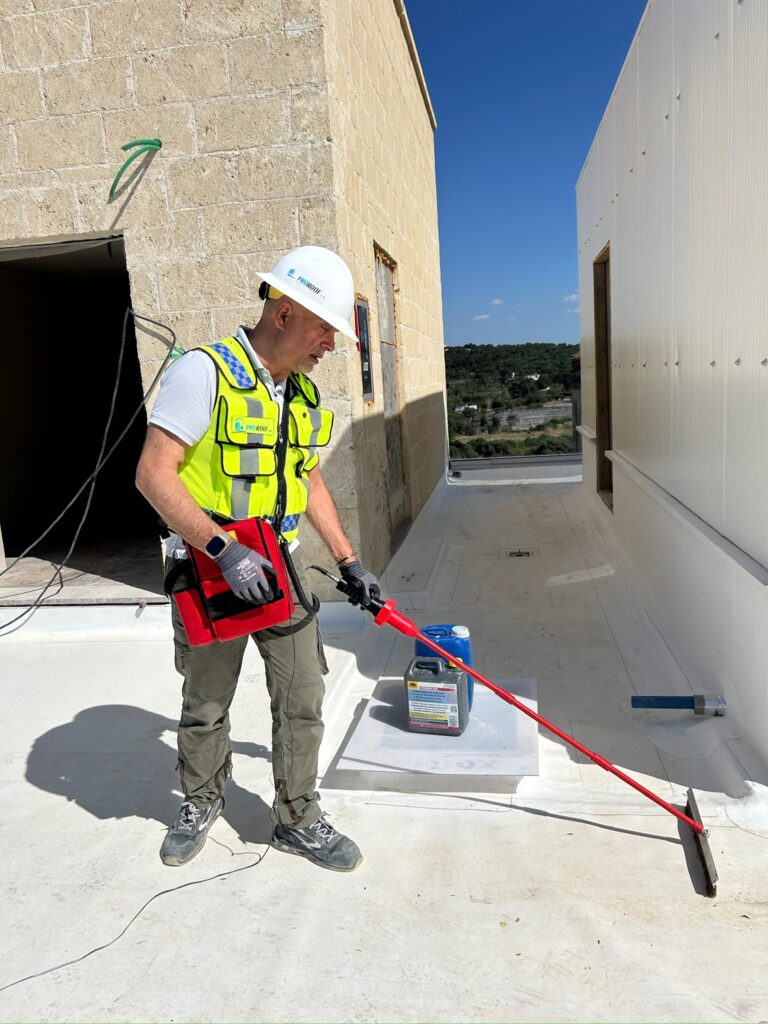 Questo sistema permette di controllare e collaudare i manti impermeabili non conduttivi mediante la tecnologia dell’alta tensione sfruttando la struttura dielettrica del rivestimento.